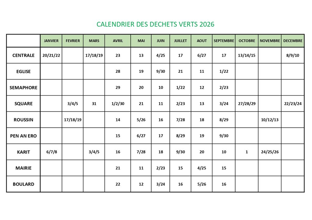 Voici le calendrier de collecte des déchets verts pour l'année 2026.
