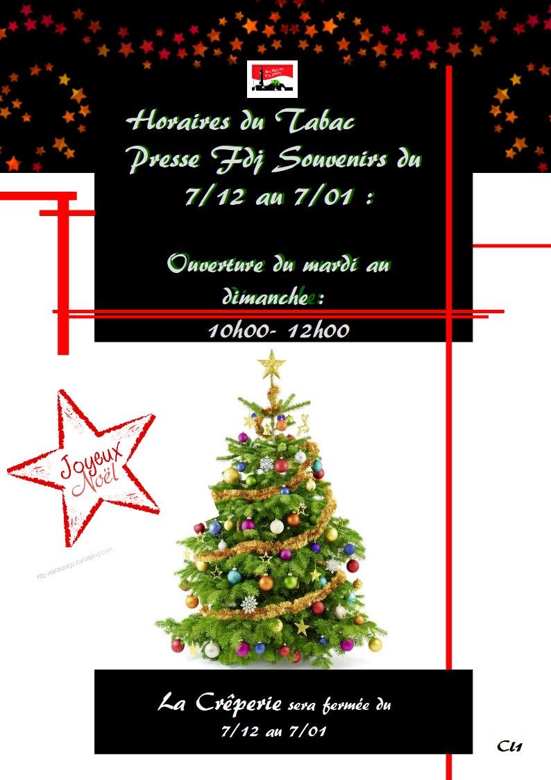 Horaires du Magasin et de la Crêperie du 07/12 au 07/01