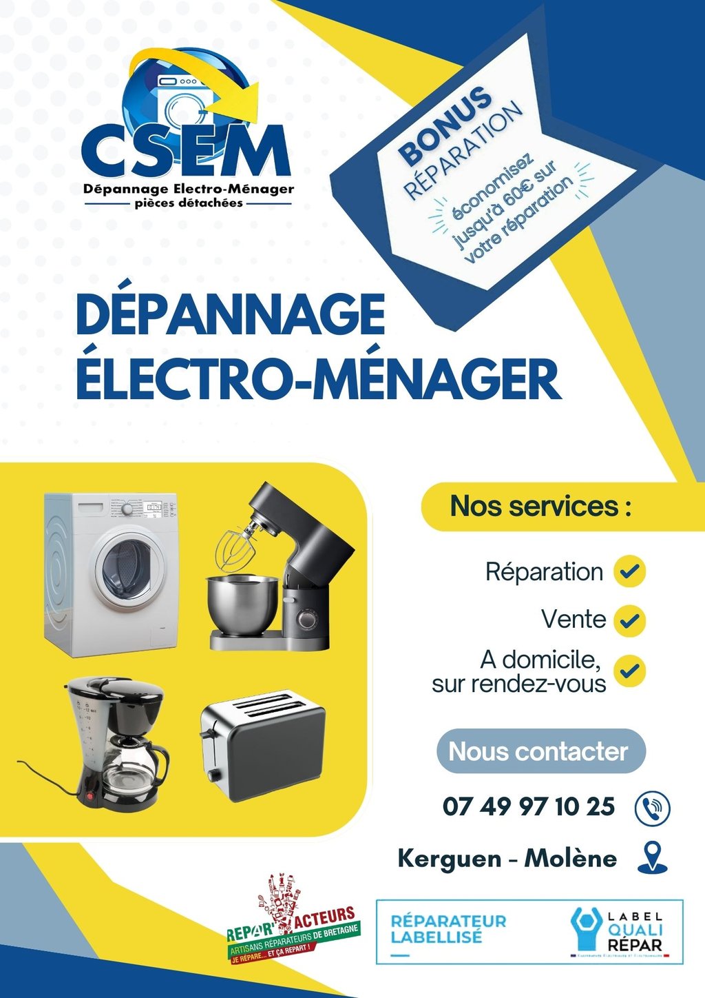 Situés à Brest depuis 1997, nous assurons la réparation et le sav d'appareils électroménager toutes marques.